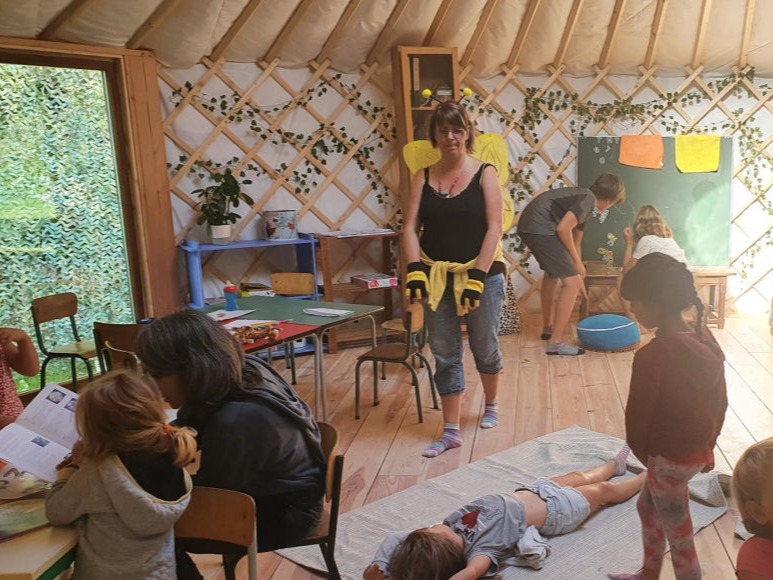 - Une yourte et un espace extérieur sécurisé en cours d’aménagement avec les enfants.